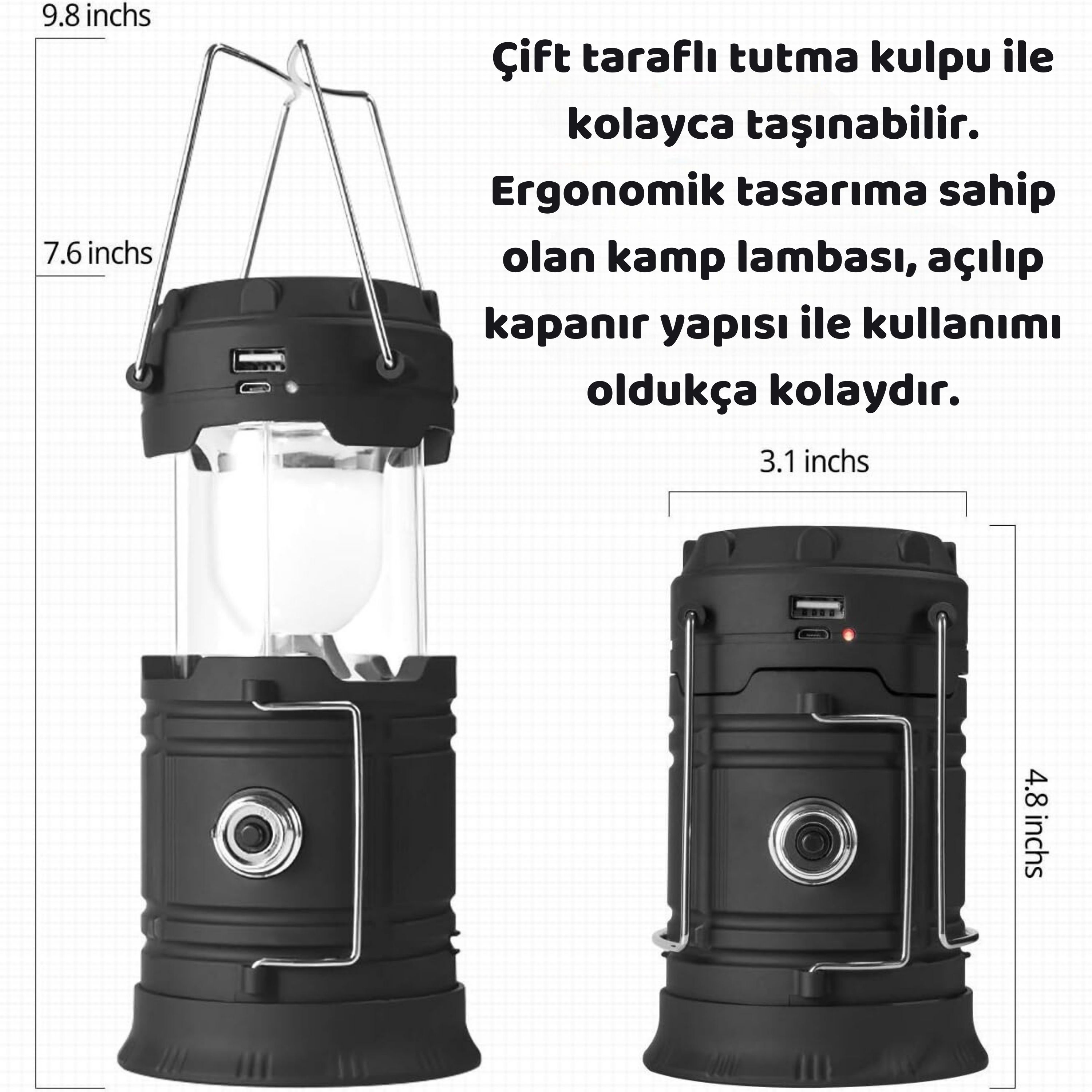 2 ADET Güneş Enerjili Solar USB Kamp Lambası